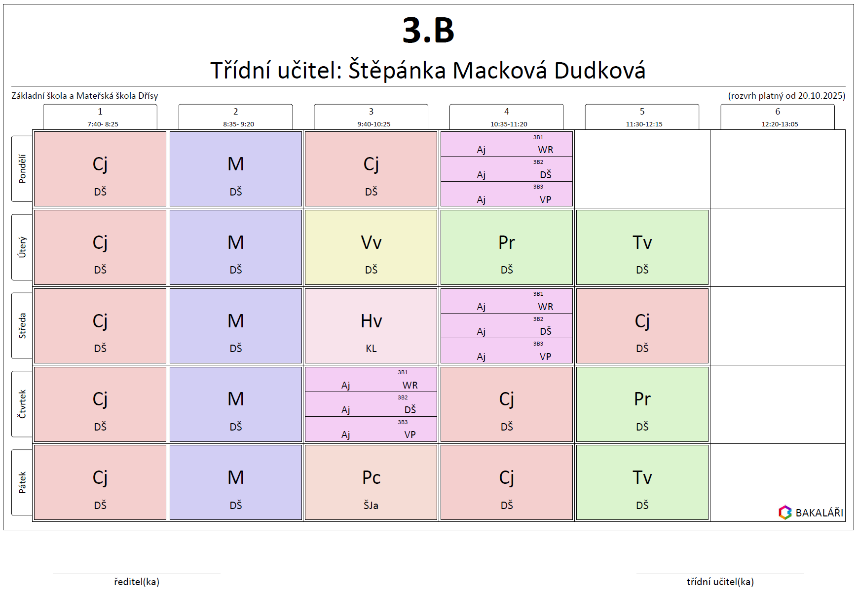 Rozvrh - školní rok 2025/2026
